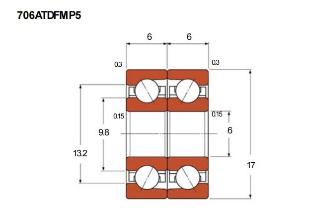706ATDFMP5型号轴承属于超高精密轴承中的精密丝杠轴承类别,其结构为小型滚珠丝杠支承设计。该轴承内径为6mm,外径17mm,厚度12mm,尺寸规格适用于空间受限的精密传动场景。