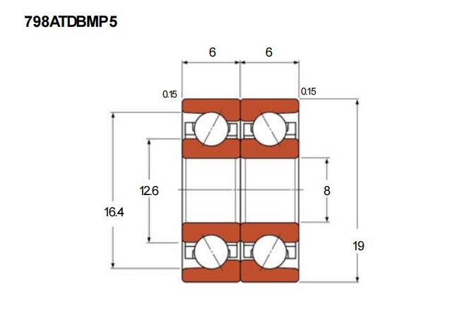 798ATDBMP5型轴承属于超高精密轴承中的精密丝杠轴承系列,专为小型滚珠丝杠支承应用设计。其结构尺寸为内径8mm、外径19mm、厚度12mm,紧凑的尺寸适合空间受限的精密机械装置。