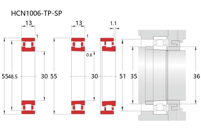 HCN1006-TP-SP属于超高精密轴承类别下的N型精密圆柱滚子轴承。其内圈两侧带有挡边,外圈无挡边结构,能够有效适应轴的热膨胀延伸,适用于浮动端或需要补偿轴向位移的工况。