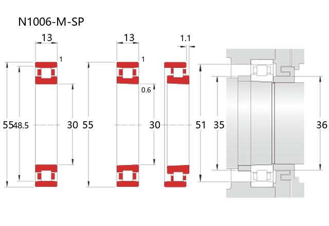 N1006-M-SP是一款符合公制尺寸标准的超高精密圆柱滚子轴承,其内径为30毫米,外径为55毫米,厚度为13毫米。若换算为英制单位,对应的尺寸分别约为1.181英寸、2.165英寸和0.512英寸。