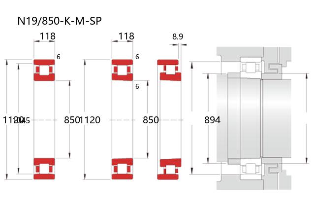 N19/850-K-M-SP属于超高精密圆柱滚子轴承系列,其结构形式为N型设计。该型号轴承内径为850毫米,外径1120毫米,厚度118毫米,尺寸规格适用于大型机械设备的高精度运转需求。作为精密圆柱滚子轴承的典型代表,该产品采用无挡边外圈和带双挡边的内圈结构,便于滚子在滚道上实现轴向位移,同时保持稳定的径向承载性能。