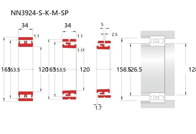NN3924-S-K-M-SP属于超高精密圆柱滚子轴承中的NN型结构,其设计特点在于双列高精度圆柱滚子与实体黄铜保持架的配合。该轴承的内径为120mm,外径165mm,厚度34mm,尺寸设计兼顾承载能力与结构紧凑性。