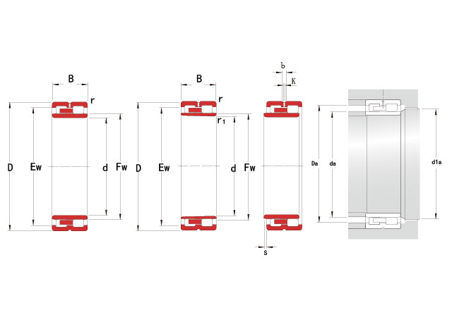 NNU:双列圆柱滚子轴承,外圈双挡边,内圈无挡边,内圈可分离