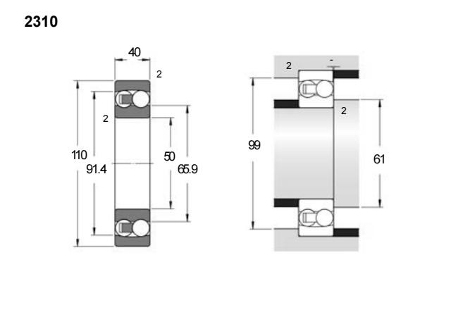 2310型轴承属于调心球轴承类别,采用直孔开式结构设计。该型号内径为50毫米,外径达110毫米,厚度为40毫米。在英制单位中,对应尺寸约为内径1.9685英寸,外径4.3307英寸,厚度1.5748英寸。