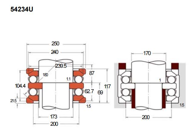 基本尺寸:内径:170 mm,外径:240 mm,厚度:97 mm。