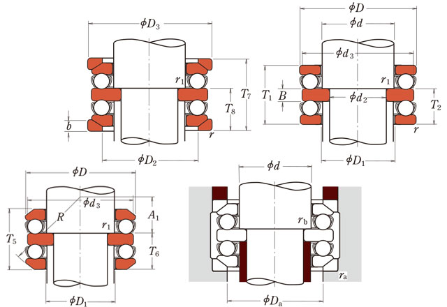 在结构上,该轴承通常由两个座圈、一个轴圈及两组钢球和保持架组成。这种设计使其能够同时支撑两个方向的轴向负荷,同时保持相对紧凑的轴向安装空间。由于双向推力特性,它常被应用于需控制轴向窜动的设备中,如立式水泵、机床主轴及某些减速装置。