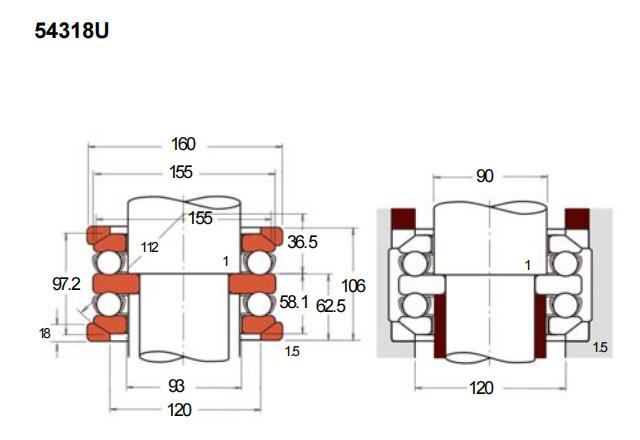 基本尺寸:内径:90 mm,外径:155 mm,厚度:88 mm。