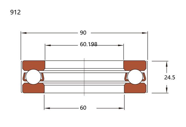 基本尺寸:内径:60 mm,外径:90 mm,厚度:24.5 mm。