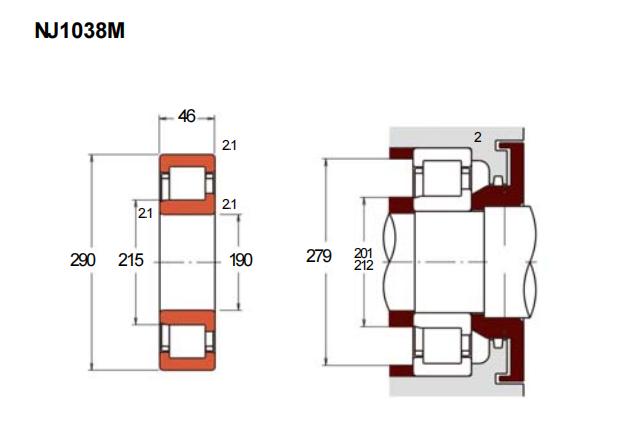 NJ1038M属于单列圆柱滚子轴承中的NJ型结构,其内圈带有双挡边,外圈则设计为单挡边形式,便于轴向定位并适应一定的单向轴向负荷。该型轴承的基本尺寸为内径190毫米、外径290毫米、厚度46毫米,可满足中等负荷工况下的径向承载需求。