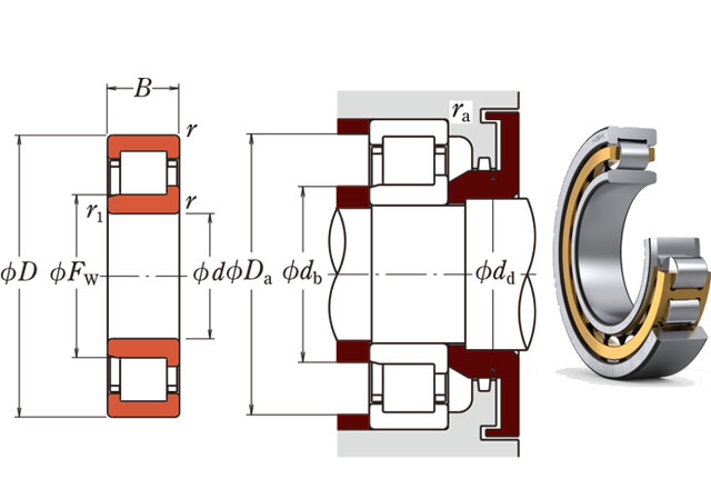 前缀列表:【NJ:圆柱滚子轴承,外圈双挡边,内圈单挡边,内圈可分离】后缀列表:【E:加强型设计】【M:机加工黄铜保持架】【L:内圈或外圈引导(取决于轴承设计)】