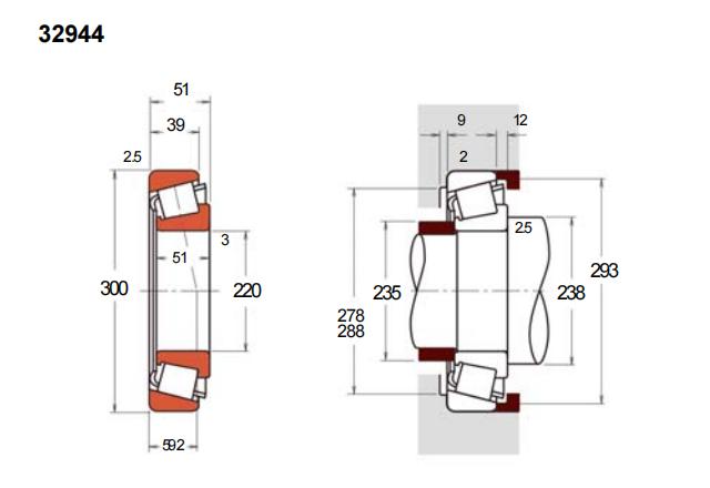 32944属于单列圆锥滚子轴承,是329系列中的一员。该轴承内径为220毫米,外径300毫米,厚度51毫米,采用圆锥结构设计,能够同时承受径向和轴向载荷,适用于存在复合负荷的工况。其滚子与滚道接触线经优化处理,有助于分散应力,提升运行稳定性。