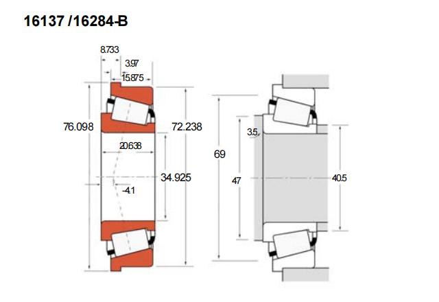 基本尺寸:内径:34.925 mm,外径:72.238 mm,厚度:20.638 mm。