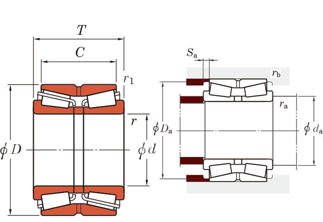 T:TDO整体外圈型双列圆锥滚子轴承