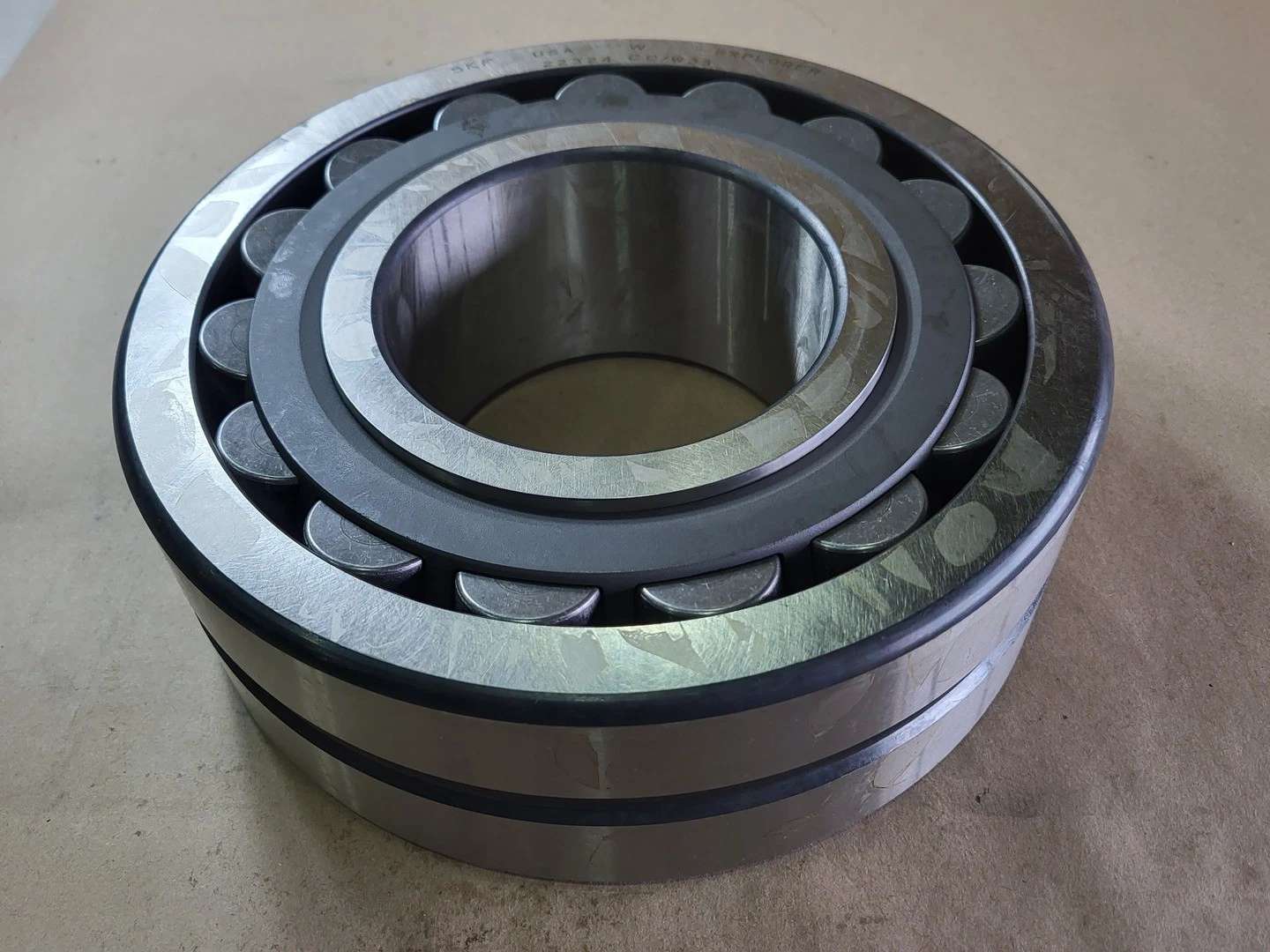 此类轴承多用于中低速重载工况,例如矿山机械、振动筛或大型传动装置。其内外圈之间的球面配合可在不对中条件下保持稳定运转,降低边缘应力。后缀CA表示钢板冲压保持架,提供良好的导向性与强度;W33代表轴承外圈带润滑槽与三个油孔,便于润滑剂循环,延长维护周期。