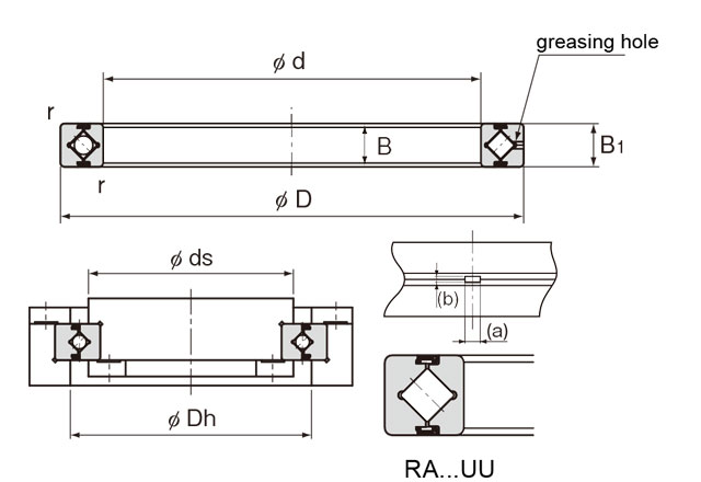 前缀列表:【RA:薄型交叉滚子轴承】后缀列表:【UU:密封型,两侧有橡胶密封圈】