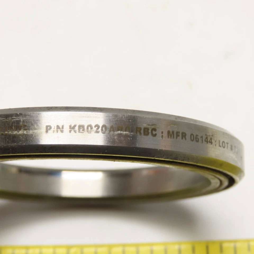 KB020AR0型号轴承属于超薄截面轴承中的开式角接触型产品。该轴承采用公制尺寸设计,内径为50.8毫米,外径66.675毫米,厚度7.9375毫米。若转换为英制单位,其尺寸规格约为内径2英寸、外径2.625英寸、厚度0.3125英寸,符合英制轴承的常见规格体系。