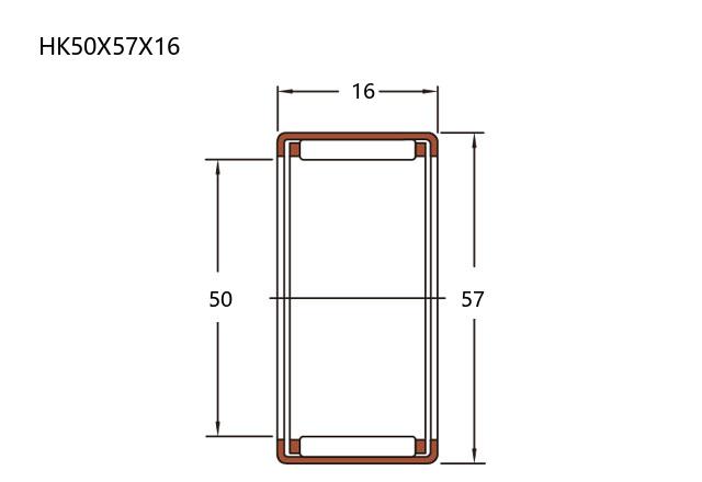 HK50X57X16为滚针轴承中的冲压外圈开口型结构,其基本尺寸为内径50毫米、外径57毫米、厚度16毫米。该设计采用薄壁冲压外圈,整体结构紧凑,有助于在有限的径向空间内实现较高的承载能力。滚针作为滚动体,增加了与滚道的接触面积,使轴承适用于承受较高径向负荷的工况。