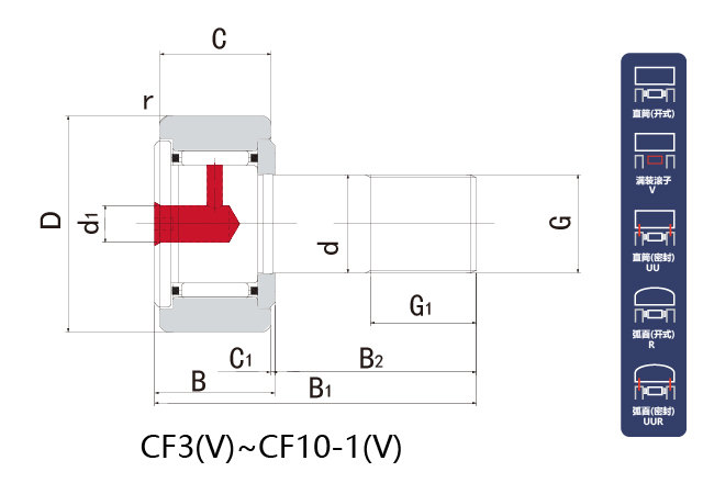 弧面(密封) | CF8UUR | |