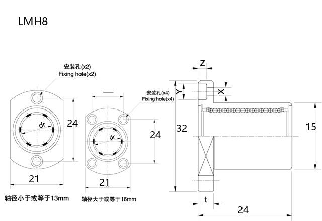 LMH8轴承尺寸、参数、图纸、互换、价格