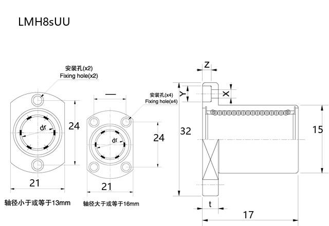 前缀列表:【LM:直线运动轴承】【H:切边法兰盘】后缀列表:【s:窄型】【UU:密封型,轴承两侧带橡胶密封圈】