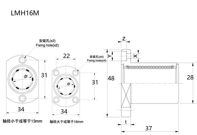 LMH16M轴承尺寸、参数、图纸、互换、价格