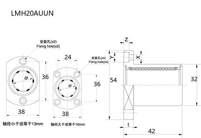 前缀列表:【LM:直线运动轴承】【H:切边法兰盘】后缀列表:【A:钢保持架】【UU:密封型,轴承两侧带橡胶密封圈】【N:镀镍型】