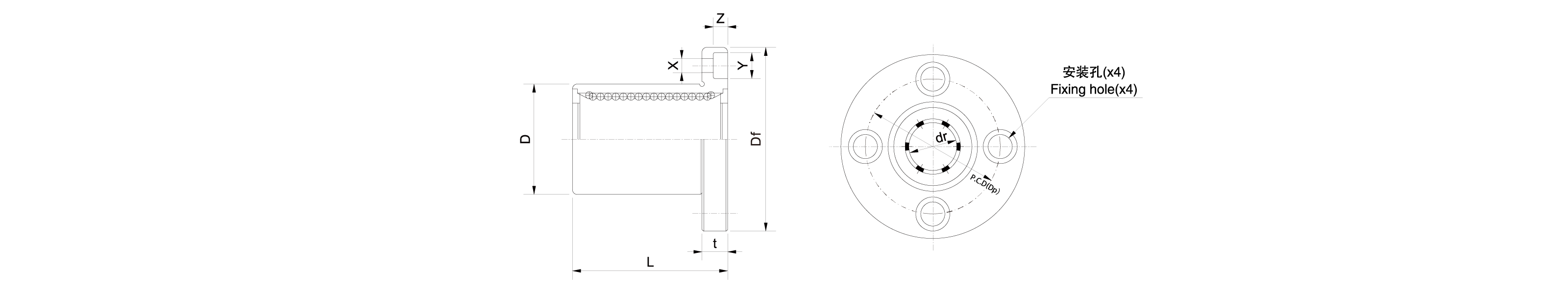 密封型 | dr | D | L | Δdr | ΔD | ΔL | Df | t | P.C.D | X×Y×Z | |