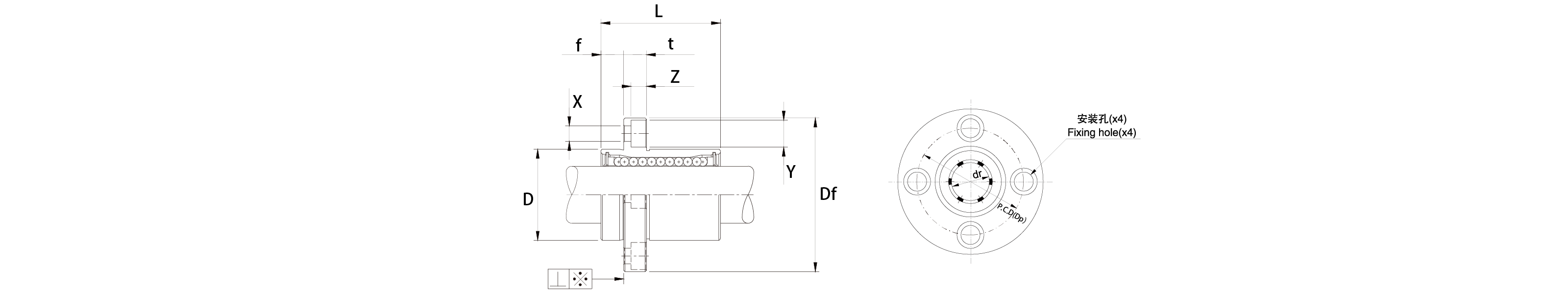 开式 | 密封型 | dr | D | L | Δdr | ΔD | ΔL | f | Df | t | P.C.D | X×Y×Z | |