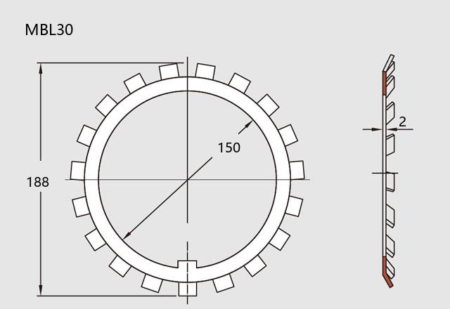 基本尺寸:内径:150 mm,外径:188 mm,厚度:2 mm。